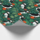 Farbenfrohe und lustige Puffin-Muster mit viel Grün, Grün und Blume. Lebhafte grüne und orangefarbene Farben.