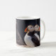 Foto von 4 Puffins in entgegengesetzte Richtung auf Felsen auf Farne Inseln, Northumberland.