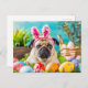 Pug Dressed as Easter Bunny with Eggs Postkarte