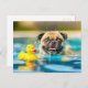 Pug Swimming with Rubber Duck in Pool Postkarte