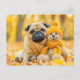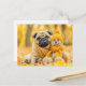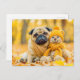 Pug with Plush Toy in Autumn Forest Postkarte