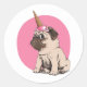 Bild von Afishka | Schotter. Bild-ID: 1170091624 | Adorable beige Welpe Mops in einem Eis-Party Kappe auf einem rosa Hintergrund. Pugicorn - Zitat schreiben.