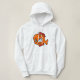 Adorable poisson rouge caricature en colère. Il a un corps orange et des nageoires rouges. Ses yeux sont grands avec une expression drôle mais en colère. Sa bouche est dans un demi-sourire qui ajoute à son look comique.