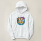 Un sweat - shirt à capuche de couleur vive avec le mot été au milieu des fleurs tropicales et des vagues de la plage.