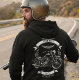 Stay warm in this personalized 2-sided biker zip hoodie! Front features a winged skull chest logo; back displays a vintage motorcycle. Essential winter outfit for cold rides. Customize with your name. Perfect unique gift for dads, riders & motorcycle enthusiasts. Warm retro moto jacket.