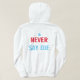 Un sweatshirt blanc avec "FIDJI rouges/bleus. ENTRONS" dans l'avant. Le dos indique "et IL NE FAUT JAMAIS JETER LE MANCHE APRÈS LA COGNÉE". Portez-le avec fierté là où dans les jeux des Fidji du monde !