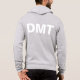 Veste rouge et blanche d'ouatine avec le logo Médicale de plongée (DMT) de technicien sur le coffre et le "DMT" gauches dans de grands caractères gras dessus de retour.
