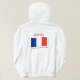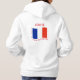 Ce vêtement de qualité a un graphisme à l'avant du drapeau français avec les mots "Vive la France" ci-dessous et les mots "Vive la" et "Liberté de chaque côté, avec une place pour votre nom au-dessus. À l'arrière se trouve le drapeau français avec "Vive la France" ci-dessous et un endroit pour votre nom au-dessus. Tous les mots peuvent être changés selon vos besoins sauf 'Vive la France' sur le devant qui fait partie du drapeau.
