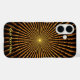 Ein schwarz-gelbes, rotes, sternähnliches Fraktal. Passen Sie Ihren eigenen Text an.