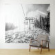 Pulver auf dem Hügel // Schwarz-Weiß-Skilift Wandteppich