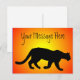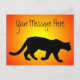 Eine Puma (Puma concolor) aka cougar, Berglöwe, Panther, Bergkatze, schwarze Silhouette gegen ein Sonnenfeuer gelb bis rotes Gefälle Hintergrund. Fügen Sie Ihre eigene Nachricht hinzu, um diese Postkarte für Wildtiere zu personalisieren. Diese schwer fassbare Katze ist auf dem amerikanischen Kontinent beheimatet und ist die größte der Familie der "kleinen Katze", etwa so groß wie ein vollgewachsener Mensch. Der Berglöwe ist enger mit Hauskatzen verwandt als mit afrikanischen Löwen. Die spirituelle Bedeutung des Cumars umfasst Unabhängigkeit, Mut, Leidenschaft, Nachtmagie, feminine oder yin Energie, Jägerinstinkt und Selbstausdruck.