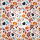Farbige Herbstblätter, Kürbis und Beeren auf weißem Hintergrund bilden ein Herbstmuster