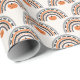 Halloween-Packpapier mit einer Halloween-Version eines Boho-Regenbogens mit einem kleinen Kürbis, einem Fledermausbogen und einer geschlechtsneutralen Halloween-Farbpalette.
