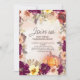 Erntedank-Dinner Einladung mit einem orangefarbenen Kürbis in ein bordeauxrotes, rosa und gelbes Herbst/Herbst-Aquarellblütenbett.