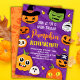 Erstellen Sie Ihre eigenen Halloween Kürbis dekorierende Party Einladungen.