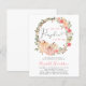 Eine niedliche, preisgünstige Babydusche mit "ein süßer Kürbis ist auf dem Weg", geschrieben in sanft grauer Typografie und einer Korallenschrift mit Wimpern, und einem Aquarellkranz mit pastellrosa und korallenfarbenen Kürbissen und Blumen. Der Name der Mutter lässt sich einfach in einem stilvollen Korallenbild und den Duschdetails in einer einfachen, weichen, grauen Typografie personalisieren.