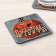 Diese Grafik zeichnete, wurde digital bearbeitet, um diesen lebendigen, orangen und schwarzen Kürbis zu verstärken, mit bedrohlichem, grinsendem Kürbis, nach rechts, vor einem blau-grauen Hintergrund, mit Happy Halloween, Emblazoned, vorne, in makabre, blassfarben, Buchstaben.