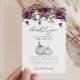 Rustikale und boho Fall Baby Dusche danke Ihnen Vorlage Karte mit Aquarellbild von weißen Kürbissen und violetten Blumen.