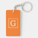 Pumpkin Orange White Gerahmt Initial Monogram Schlüsselanhänger