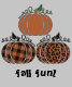 Dieses Design ist perfekt für den Herbst geeignet und besteht aus drei Kürbissen: Brennen Orange, Büffel kariert und einem Imitat Tierdruck. Der Text unten kann angepasst werden.