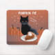 Colourful artwork depicting a delicious Pumpkin Pie, and the cat has his eyes on the nice swirl of cream!