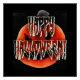 Diese Grafik zeichnete, wurde Foto bearbeitet, um zu verbessern, dieses Menacing, Kürbisbild grinsen, in Orange, Gelb, Schwarz und Grau, farbenfroh Halloween, Emblazoned, vorne, in makabre, weiße Schrift.