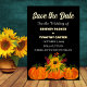Moderne, elegante, rustikale, boho, Sonnenblumenblume, Kürbis Wasserfarbe, QR Code, Foto, Goldfolie, Hochzeit Save the Date. Sie können es mit Ihren eigenen Daten personalisieren.