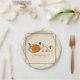 Ich Liebe, wenn es Zeit ist, mit Herbstfarben zu arbeiten! Diese Teller verfügen über einen großen orangefarbenen Kürbis und grüne Weinberge mit Blätter in der Mitte, und Ihr Text ist unten. Das Design ist gerahmt mit lustigen orangen und grünen Quadraten zufällig verworren. Genießen Sie Ihre Veranstaltung!
