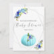Sweet Baby blau und gelb Blumen und silbernen geometrischen Rahmen zu feiern bei einem Baby-Dusche. Ein großer aqua-blauer Kürbis zu niedriger verlassen. Bearbeiten Sie Textbereiche, um ein einzigartiges und spezielles Baby-Dusche-Party von Over oder Under zu erstellen.