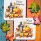 Ein niedliches Herbstdesign für den Erntedank mit Kürbissen, Ahornbaum-Blätter und einer Lampe!