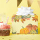 Niedliche Abbildung von Kürbis, Herbstblättern und Nüssen. Happy Thanksgiving
