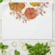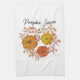 Ein niedliches Design mit Kürbissen in Orangetönen, in einem Rahmen von kleinen herbstlichen Blume und Blätter in Herzform. Auf dem Sprichwort "Pumpkin saison"