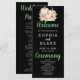Das Black Herbst-Serenity-Hochzeitsprogramm ist eine faszinierende Wahl für Paare, die eine moderne und leicht böhmische Touch für ihre Herbst- oder Herbst-Hochzeit suchen. Der dunkelschwarze Hintergrund dient als Leinwand für ein zeitgenössisches Design mit blassorangen und weißen Kürbissen, sowie mit Sonnenblumen, die auf einem hübschen, ländlich-schicken, karierten Tischdecken in Orange und Weiß eingerichtet sind. Das Schwarze Herbst-Heiratsprogramm spiegelt perfekt das Wesen der Herbstsaison wider und verbindet eine schlichte Ästhetik mit dem rustikalen Charme des Herbstes. Die sanften, blassorangen und weißen Farbtöne der Kürbis und der Sonnenblumen verleihen dem Ganzen ein Gefühl der Ruhe und Wärme und schaffen so ein visuell bezauberndes Programm. Auf der Rückseite des Programms entdecken Sie eine sorgsam kuratierte Liste der Hochzeitsfeier in klassisch schwarz-grau präsentiert. Der vorwiegend einfache Block-Schriftart sorgt für Klarheit und Raffinesse, während die Wörter "Welcome", "Ceremony" und "Wedding Party" die Bühne in einem hübschen Schriftart mit dekorativen Schriften in den Mittelpunkt stellen. Diese Skizzen fügen dem Design eine Touch von Eleganz und Personalisierung hinzu und machen Ihr Programm zu einem angenehmen Sake für Sie und Ihre Gäste. Wählen Sie das Black Autumn Serenity Wedding Programm, um Ihren Hochzeitstag mit den ruhigen Farben und dem Ambiente des Herbstes zu bereichern. Das anmutige Design und die umsichtigen Details machen dieses Programm zu einem idealen Ort für Paare, die gewollt haben, ihre Liebe in einem Ambiente zu feiern, das den Geist der Herbstsaison wunderbar umsetzt.
