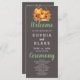 Das Ash Gray Herbst Harmony Wedding Program ist eine raffinierte und stilvolle Wahl für Paare, die Herbst- oder Herbstfest planen. Der ruhige, asergraue Hintergrund ist die ideale Leinwand für ein modernes und leicht böhmisches Design mit lebhaften orangefarbenen Kürbissen und Sonnenblumen. Das Set bildet ein charmantes, ländlich-schicke Orange- und Weiß-kariertes Tischdecken. Das Ash Gray Herbst Harmony Wedding Programm erfasst die Essenz der Herbstsaison und verbindet zeitgenössische Ästhetik mit dem gemütlichen, rustikalen Charme des Herbstes. Die blühenden Orangenkürbis und die Sonnenblumen bilden ein visuelles Fest, das den Reichtum, die Wärme und die natürliche Schönheit der Erntezeit symbolisiert. Dieses Programm ist ideal für Paare, die ein elegantes und zeitloses Design suchen, das die einzigartige Atmosphäre ihrer Herbstfeier widerspiegelt. Auf der Rückseite des Programms finden Sie eine sorgsam zusammengestellte Liste der Hochzeitsfeier in klassisch schwarz und grau, die in einem meist einfachen Schriftart präsentiert wird, um Klarheit und Eleganz zu schaffen. Hinzu kommt eine Touch von Launen und Personalisierung, die Worte "Willkommen", "Zeremonie" und "Hochzeitsfeier" werden kunstvoll in einem hübschen dekorativen Schriftart geschrieben und dienen als reizvolle Brennpunkte für das Design. Wählen Sie das ash Gray Autumn Harmony Wedding Program aus, um Ihren Hochzeitstag mit den bezaubernden Farben und dem Ambiente des Herbstes zu bereichern. Das anmutige Design und die umsichtigen Details machen dieses Programm zu einem idealen Ort für Paare, die gewollt haben, ihre Liebe in einem Ambiente zu feiern, das den Geist der Herbstsaison wunderbar umsetzt.