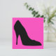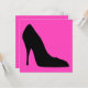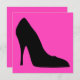 Schwarze Form eines Single mit hohen Absätzen vor hübschem, hellrosa Hintergrund.