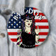 Im Nachhinein würde ich eher den Button mit Magnet bestellen... damit dieser bei jeder Kleidung angebracht werden kann. Sehr gute Bildqualität