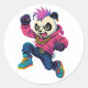 A fierce cartoon panda with a punk hairstyle, hoodie, and gold chain leaps forward with rebellious street attitude and bold urban style.