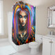 Dieser Duschvorhang hat einen bunten Punk-Rocker darauf.