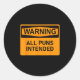 Puns Are Intended Funny Warning Sign Sarcastic Hum Runder Aufkleber