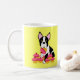 Welpe süßer Hundewunderlicher Bostons Terrier mit rosa kleinen Kuchen