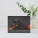 Rottweiler 1,5 Monate alter Welpe spielt mit roter Garnkugel