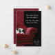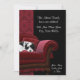 Red Damask Samtsofa mit schwarz-weißem Welpenhund Änderung der Adresse Ankündigung.