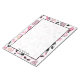 Un bloc-notes avec un design composé de lunettes de soleil pour chat rose et noir rétro, des sacs à monnaie rose avec pois gris, des sacs à main rose avec arc noir, des rouges à lèvres roses, des pierres précieuses roses et une bouteille de parfum avec atomiseur rose. Personnalisez avec votre nom.