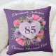 Vous cherchez un cadeau fabuleux pour une femme de 85 ans? Elle va adorer ce magnifique coussin de 85ème anniversaire violet avec une belle conception du coeur floral. Ajoutez son nom au-dessus du coeur floral, et tout message de votre choix en dessous. Parfait cadeau d'anniversaire de 85 ans pour toute femme !