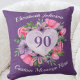 Vous cherchez un cadeau fabuleux pour une femme de 90 ans? Elle va adorer ce magnifique coussin pourpre de 90ème anniversaire avec un joli design de coeur floral. Ajoutez son nom au-dessus du coeur floral, et tout message de votre choix en dessous. Parfait cadeau d'anniversaire de 90 ans pour toute femme !