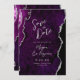 Purple Agate Silver Script Wedding Save the Date Einladung