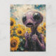 Purple Alien in a Sunflower Field Postkarte