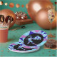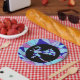 This simple paperplate has an abstract triangle pattern that features purple, blue, and pink colors.. With a dragon!