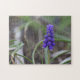 Ein kleiner, mit violetten Blumen bedeckter Stamm vor dem Gras.