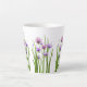 Violette Blumen und seltsame Bugs schmücken diese neueste Tasse für eine Touch von Charme.